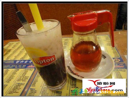 油太大,太甜,配杯奶茶解膩吧~~看到好多茶餐廳外面都有這個標記,這家店的墻上還貼著被評為香港十佳奶茶餐廳之類,茶的香味很濃,奶很滑,不錯~吃完跟人家老板臭貧,說我們是游客,因為一直都是俺們那個當地同學粵語交流。所以大叔很詫異的說:你們一點都不像游客,很像住在附近的.然后一看我說:尤其是她~~咦?大叔眼神真不怎么好