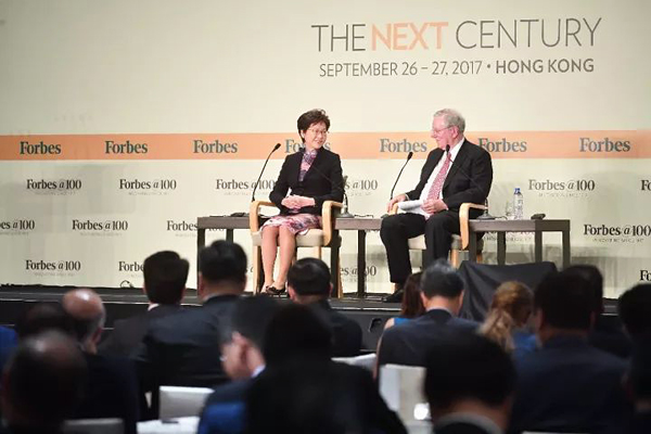 香港特別行政區(qū)行政長官林鄭月娥恭賀福布斯一百周年刊慶之余,表示香港今年亦慶祝特區(qū)成立20周年,祝愿香港未來百尺竿頭, 更進一步。