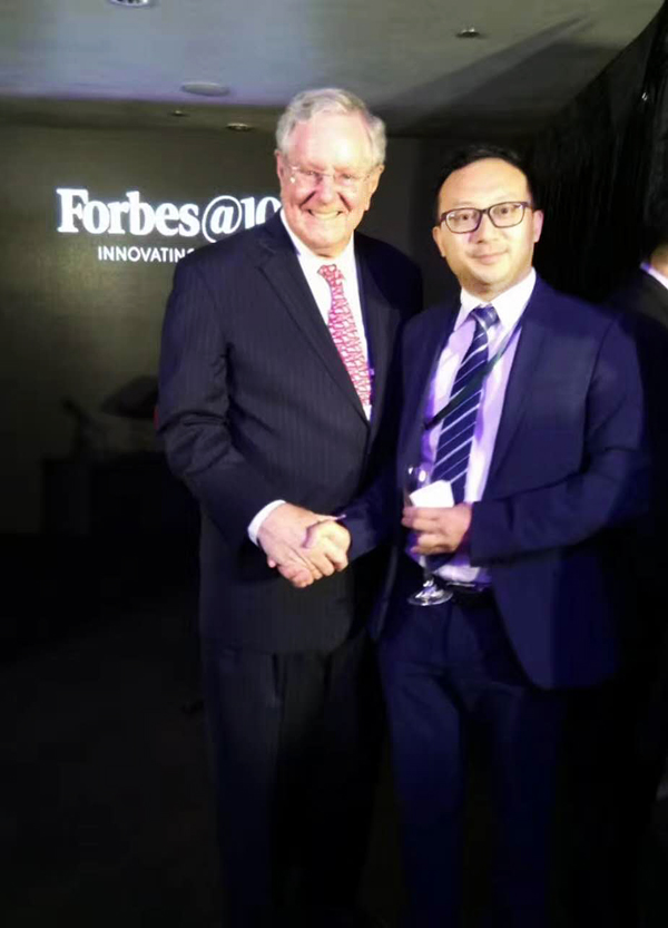 瑞豐德永集團運營總監(jiān)龔彥斌先生與福布斯家族主席史蒂夫 • 福布斯(Steve Forbes)先生合影