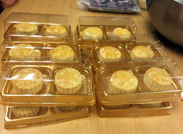 經(jīng)過大家的努力,準(zhǔn)備送給社區(qū)獨(dú)居老人的月餅做好了