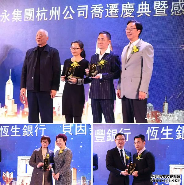 1月18日,瑞豐德永集團在杭州洲際酒店舉行了盛大而隆重的杭州公司喬遷慶典暨感恩答謝晚宴。浙港兩地各級政府領導、各商會會長、戰略合作伙伴、商業翹楚和行業領袖、國際友人共同見證了喬遷儀式的盛大開啟并出席了當晚答謝晚宴。