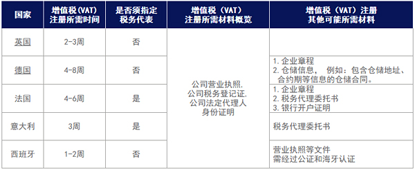 2.英德法意西增值稅(VAT)注冊所需時間及材料