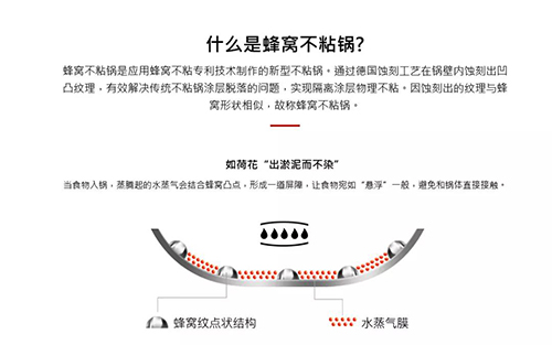 打開康巴赫官網(wǎng),也處處可見其對于蜂窩不粘專利技術(shù)(專利號:ZL 2013 10089292.6)的強調(diào)宣傳,還特意解釋了什么是蜂窩不粘鍋。