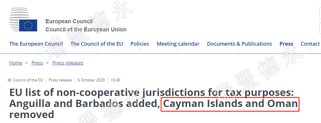 理事會(10月6日)決定出于稅收目的將安圭拉和巴巴多斯列入歐盟稅務不合作管轄區名單。而開曼群島與阿曼,在通過必要的改革以改善其稅收政策框架之后,歐盟理事會將其從名單中移除。