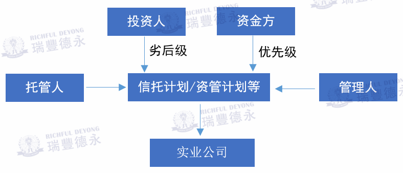 信托計劃/資管計劃等還可以做成結構化產品,即管理人根據投資者不同的風險偏好對受益權進行分層配置,使具有不同風險承擔能力和意愿的投資者,通過投資不同層級的受益權來獲取不同的收益,并承擔相應風險,如下圖所示: