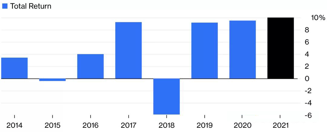 根據彭博的一份統計顯示,對沖基金連續三年上漲超過9% ,2021年10.3%的收益率是自2014年以來最高的。