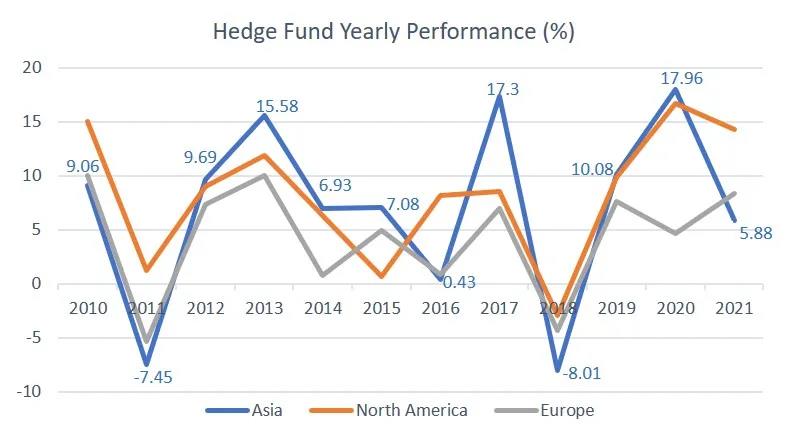 最新行業數據顯示,對沖基金在2021年12月反彈,以良好的表現結束了充滿挑戰的一年,全球對沖基金指數2021年收益10.3%。而2021年亞洲對沖基金收益指數為5.88%,投資回報率不及2020年。