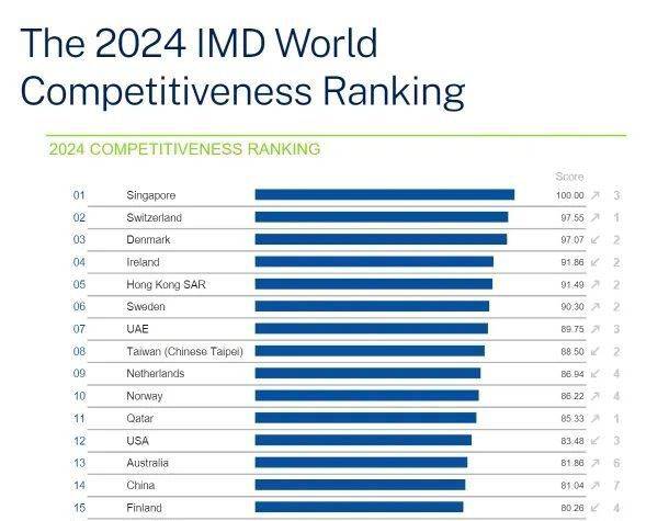 新加坡擁有高度發達的自由市場經濟,根據今年6月18日瑞士洛桑國際管理發展學院(IMD)發布的《2024年全球競爭力年報》,新加坡憑借卓越的表現,在全球最具競爭力國家的排名中榮登榜首,成為全球最具競爭力的經濟體。2024全球競爭力報告:新加披逆襲登頂全球競爭力報告報告覆蓋了全球67個經濟體,并對這些國家在經濟表現、政府效率、商業活力和基礎設施建設等四大領域的表現進行了全面的評估,包含了164項競爭力...