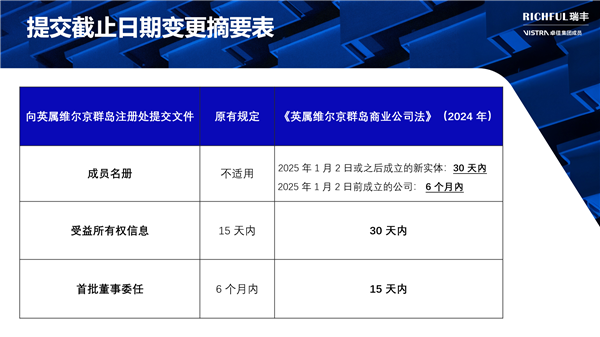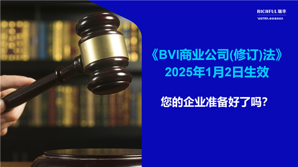 對于在BVI設(shè)有業(yè)務或計劃在該地區(qū)設(shè)立公司的企業(yè)來說,了解并準備應對這些變化至關(guān)重要。為了確保順利過渡到新法律框架,BVI的監(jiān)管機構(gòu)可能會提供詳細的指導方針和實施細節(jié)。RICHFUL瑞豐目前正在密切關(guān)注相關(guān)更新,積極確定提交資料的相關(guān)流程細節(jié),并將在接下來的幾周和幾個月內(nèi)與您保持持續(xù)溝通,以便于您及時調(diào)整運營和合規(guī)策略,確保符合新法律的要求。
