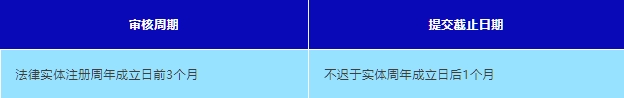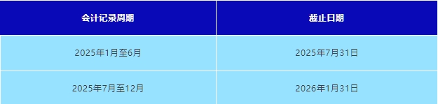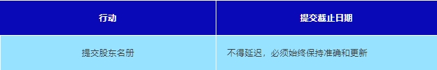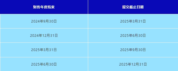 在財(cái)務(wù)年度結(jié)束后6個(gè)月內(nèi)提交。大型實(shí)體和非大型非控股實(shí)體必須準(zhǔn)備年度財(cái)務(wù)總結(jié),并保存在其注冊(cè)辦公室。常見截止日期: